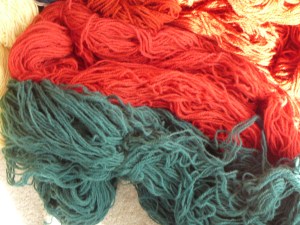 The third picture down, the very pale yellow, in the center of the picure (looks almost cream in the picture, but definitely is yellow in real life) is dyed with the top leaves and flowers of the Dyers Broom (Genista tinctoria) that I grow in my garden. The rest are store bought natural dyes.
