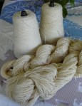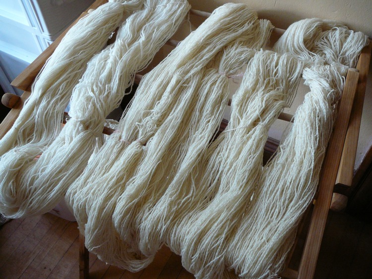 and scoured them (that just means I washed them to get the spinning oils off, but it sounds so dramatic to say I scoured them). They are now dry.